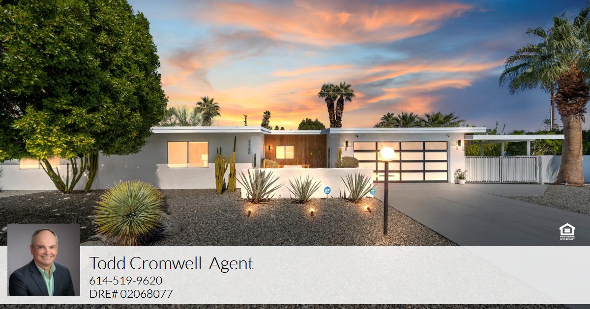 Stunning home in the Sunrise Park neighborhood of Palm Springs. The interior of the home was completely reimagined by interior designer Christopher Kennedy. The sophisticated interior features beautiful tile floors throughout, stunning wallpaper and custom window treatments. All of the matching furniture and accessories are available outside of escrow. The gorgeous backyard includes a pool, spa and firepit along with your own fruit trees. A large covered patio is the perfect place to relax. The primary suite has direct access to the backyard spa and pool. Improvements include extensive landscaping, complete renovation of primary bathroom, replacement of the plumbing and sewer line to street, and the addition of a tankless water heater. Many smart home features allow for remote control of security, lighting, pool functions, remote climate control, and security cameras. A beautiful and functional interior laundry room was created off the kitchen. Sunrise Park is an upscale neighborhood in the heart of Palm Springs. Close in proximity to shopping, dining, casino, and the nightlife of Downtown Palm Springs! The home is a perfect full-time residence or vacation home. It is also eligible for short-term vacation rentals, making it a fantastic investment opportunity. Move-in ready,
