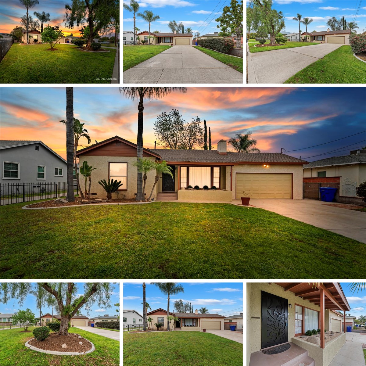 This beautiful home is move in ready with new exterior and interior paint; upgraded kitchen & bath; new carpeting in living room, dining area and two bedrooms. The sparkling bathroom has a separate tub and a separate shower and a vanity. The bright remodeled kitchen has new white counters and cupboards with self-closing drawers. Automatic sprinklers front and back. Great curb appeal. The garage is a 2-car attached garage with rollup door. The garage might be a good option and consideration for a conversion to an ADU (Accessory Dwelling Unit). This is a fantastic opportunity for a first-time buyer to own a well-maintained 1950's home with two bedrooms; and a spacious yard. This home offers close freeway access and is close to schools, shopping, medical facilities and minutes away from two major golf courses. Metrolink commuter rail is within 7 miles. Don't miss out on this property. NOT FOR RENT OR LEASE.