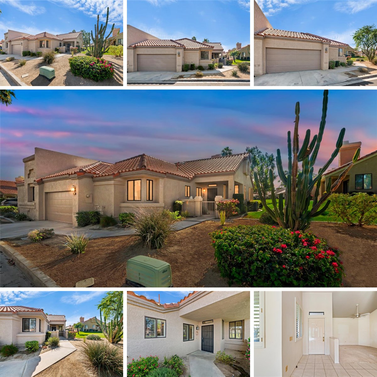 What if you could own a home in Palm Desert Resort Country Club with greenbelt views and a community pool just steps from your patio? This two-bedroom plus den home offers flexible living space perfect for guests, a home office, or a quiet retreat. The living room features vaulted ceilings, plantation shutters, and a fireplace that creates a warm and inviting atmosphere. The kitchen opens to an informal dining area designed for comfortable everyday living. Highlights include: Two-car garage • Greenbelt location • Community pool just steps away • Short-term rentals allowed. Palm Desert Resort Country Club is a gated community featuring a lush 18-hole championship golf course, clubhouse, tennis courts, bocce ball, lakes, and beautifully maintained greenbelts throughout the community. Association dues include building and grounds maintenance, cable TV, clubhouse access, and trash service.