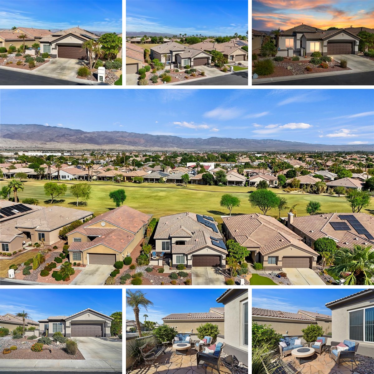 Greet the morning sun in this lovely, remodeled home with expansive 4th fairway and mountain views. The perennial-favorite Merion model resides on a quiet cul-de-sac and offers great-room living with 1700 square feet, two bedrooms, den, laundry room with storage, and 2-car plus golf-cart garage. The gourmet kitchen has been reimagined with spacious quartz counters, reduced-height island that invites guest interaction, pantry, wine fridge, hidden-appliance cabinetry, and copious storage space. There's brand new LVP flooring throughout the entire house, two renovated bathrooms, walk-in closet, plus solar panels to mitigate energy bills. Enclosed front courtyard doubles the outdoor living areas and complements the covered backyard space with its heated Pebble-Tec pool/spa. Morning sun on the patio and afternoon sun on the courtyard gives the best of both worlds in outdoor space. Heritage Palms Country Club is a unique active-retirement club where residents own the Arthur Hill-designed golf course without any initiation fees. Your HOA dues give you access to tennis, pickleball, card and billiard rooms, indoor & outdoor pools, fitness center, banquet facilities, and a fabulous restaurant. It even includes cable TV and high-speed internet access. See Documents for a list of improvements/upgrades to the home. Furniture and household items are negotiable.
