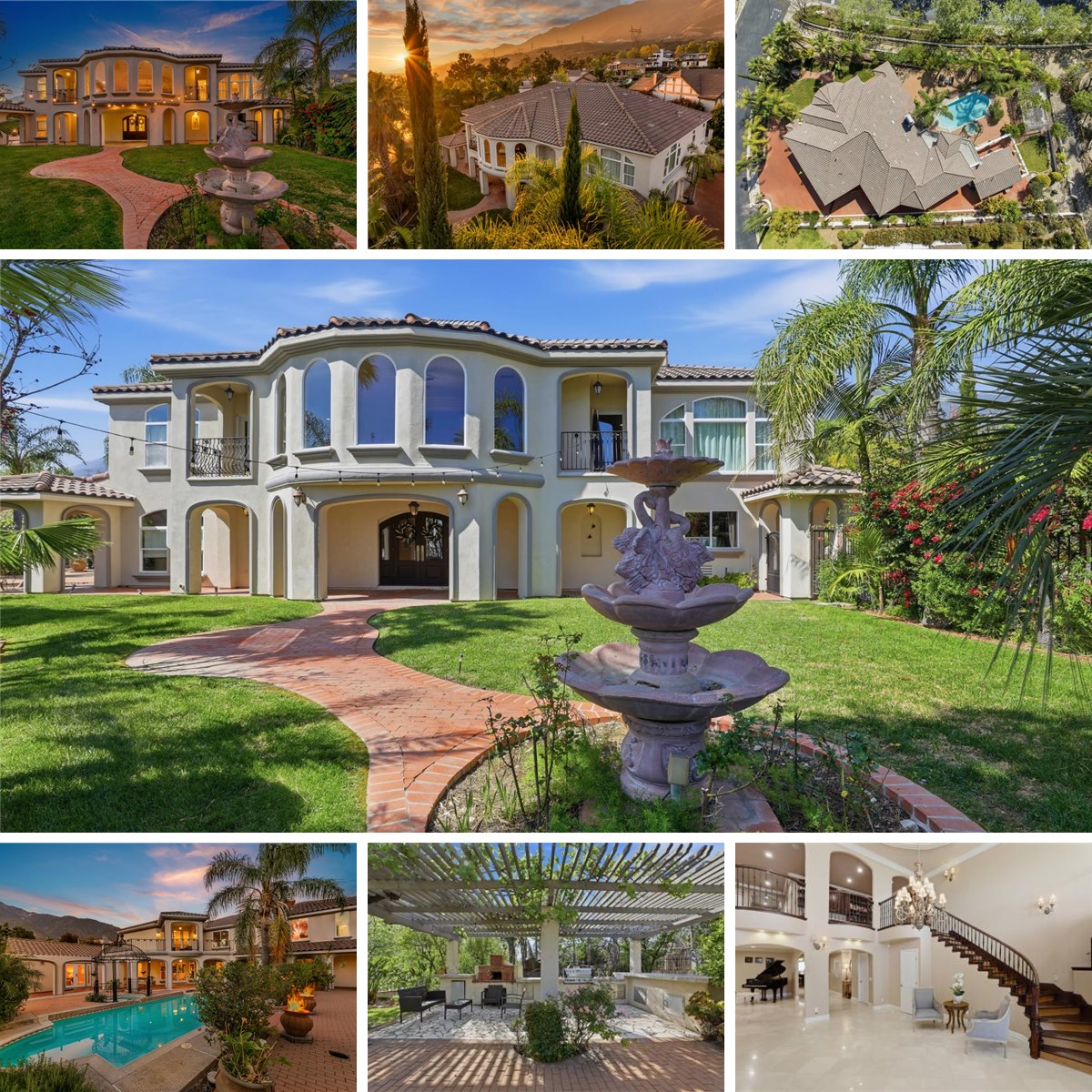 Welcome to Clover Place Manor, a magnificent custom residence set behind the gates of prestigious guard-gated Haven View Estates in Rancho Cucamonga. Situated on an expansive half-acre lot, this 7-bedroom, 7-bath estate offers approximately 8,500 square feet of refined living with an ideal blend of elegance, comfort, and scale. A private courtyard with a tranquil fountain leads to a grand double-door entry and marble foyer. The open floor plan features formal living and dining spaces, an executive office with custom built-ins, and a dramatic family room with soaring ceilings and abundant natural light. The chef’s kitchen is a true showpiece—appointed with GE Monogram appliances, including a built-in refrigerator, double ovens, and a six-burner cook top, complemented by a butler’s pantry, expansive granite countertops, custom backsplash, and an oversized center island designed for gathering. Intimate alcoves and inviting sitting areas throughout create the perfect setting for entertaining or relaxing while enjoying the surrounding views. A main-level guest suite with private entrance offers ideal accommodations for guests or multi-generational living. Upstairs, a spacious loft and thoughtfully designed living spaces continue the home’s theme of comfort and versatility. The primary suite is a private sanctuary, generous in scale with a sitting area and dual-sided fireplace, opening to a private balcony with breathtaking city lights views. The spa-inspired bath features dual vanities, custom cabinetry, a large steam shower, and a jetted soaking tub, complemented by an expansive walk-in closet. Thoughtful upgrades include crown molding, custom cabinetry, and refined architectural details throughout. The resort-style backyard features a pool, spa, outdoor kitchen, and multiple gathering areas designed for the ultimate California lifestyle. Clover Place Manor is a rare opportunity to own a statement residence in one of Rancho Cucamonga’s most exclusive gated communities.