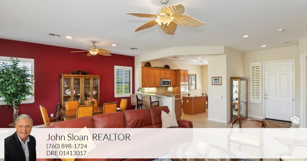 Perfectly positioned along the 12th tee of the South Course in Sun City Shadow Hills Phase I, this beautifully enhanced San Benito model captures sweeping views of the golf course, tranquil water features, and the Chocolate Mountains beyond. The setting, orientation, and layout come together to create an exceptional desert living experience. Inside, the home offers a flexible and well-planned design featuring 2 bedrooms, 2 bathrooms, a den/office, and an additional bonus room, allowing space for guests, hobbies, work-from-home needs, or a private retreat. The Great Room is filled with natural light and expansive windows that frame the outdoor scenery, seamlessly connecting to the open kitchen and dining areas. The kitchen is thoughtfully appointed with slab granite countertops, double ovens, a center island, breakfast bar seating, modern and a cheerful breakfast nook, making it ideal for both everyday living and entertaining. The primary suite provides a comfortable escape with direct backyard access, dual vanities, a soaking tub, separate shower, and an oversized walk-in closet. Guest accommodations and bonus spaces are equally versatile and inviting. Step outside to a north-facing backyard designed for year-round enjoyment, offering cooler afternoon shade, natural wind protection, and peaceful pond and fairway views. Low-maintenance landscaping in both the front and rear yards enhances the home's ease of ownership and lock-and-leave appeal. Additional features include plantation shutters throughout and an oversized 2-car garage with dedicated golf cart space. With its ideal lot orientation and scenic backdrop, this home delivers comfort, quality, and resort-style living in one of the Coachella Valley's most sought-after 55+ communities.